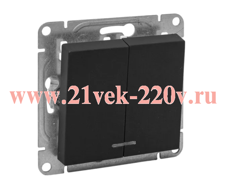 Выключатель 2-кл. СП Эпика с подсветкой механизм черн. EKF