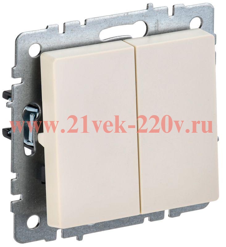 Механизм двухклавишного выключателя для скрытого монтажа IEK BRITE с клавишами бежевого цвета. BR-V20-0-10-K10