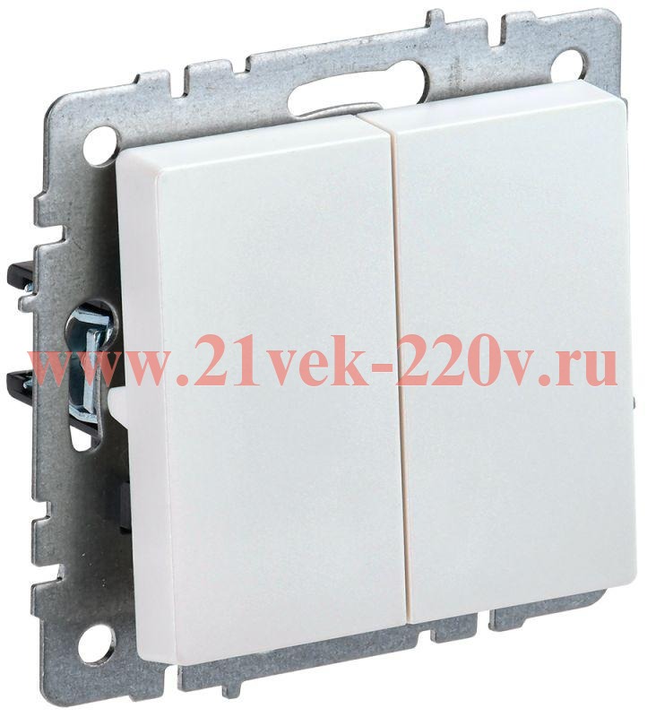 Механизм двухклавишного выключателя для скрытого монтажа IEK BRITE с клавишами перламутрового цвета. BR-V20-0-10-K36
