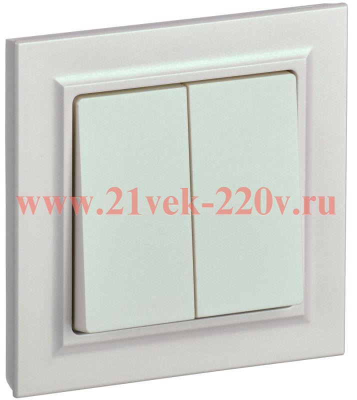 Двухклавишный выключатель для скрытого монтажа IEK BRITE перламутрового цвета, в комплекте с рамкой