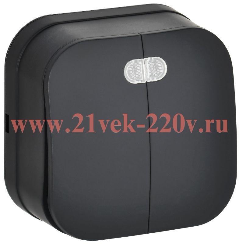 Выключатель двухклавишный с подсветкой накладного монтажа Глори ИЭК матового черного цвета EVH21-K02M-10