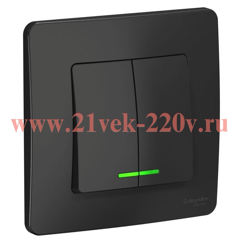 Двухклавишный выключатель скрытого монтажа (встраиваемый) с индикацией, Бланка Систем Электрик, угольного цвета