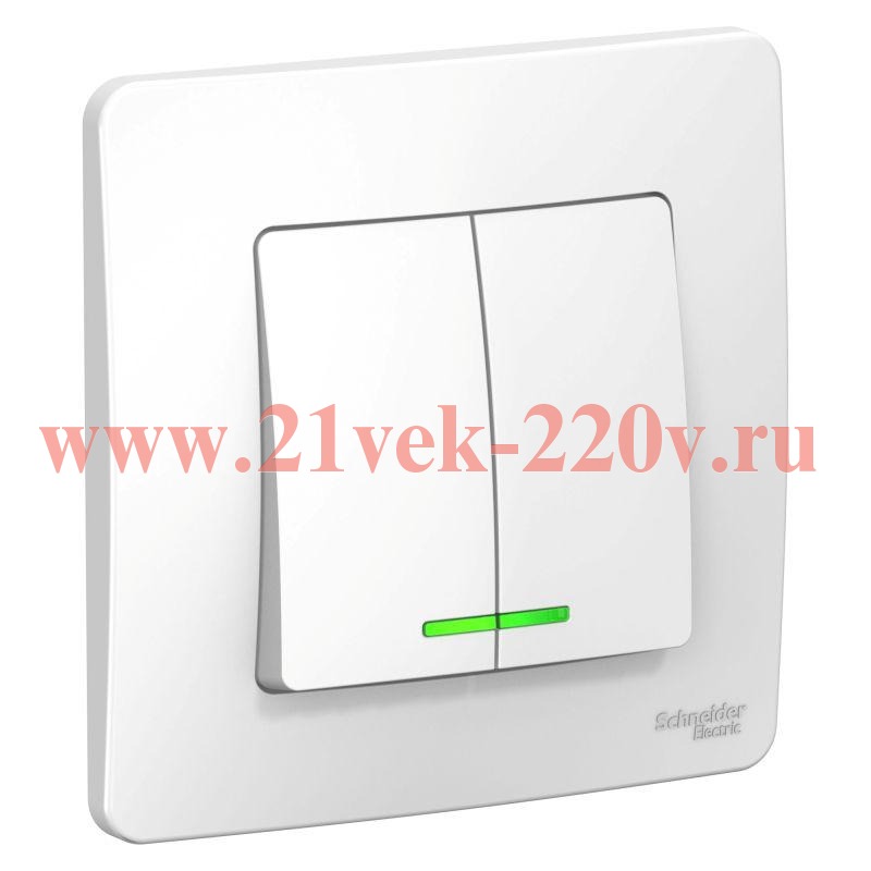 Двухклавишный выключатель скрытого монтажа (встраиваемый) с индикацией, Бланка Систем Электрик, белого цвета