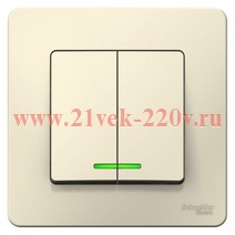 Двухклавишный выключатель скрытого монтажа (встраиваемый) с индикацией, Бланка Систем Электрик, молочного цвета