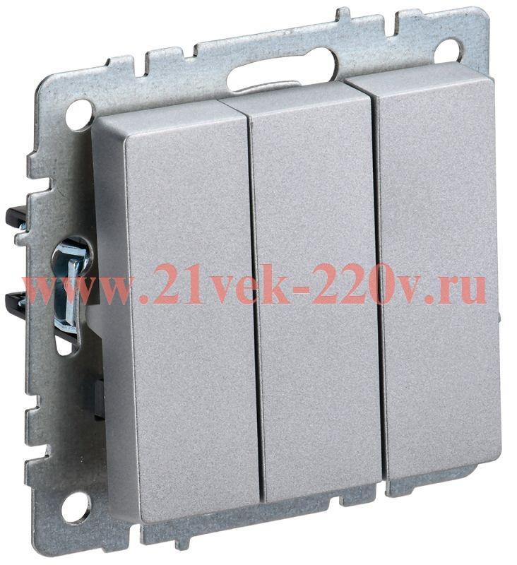 Механизм трехклавишного выключателя для скрытого монтажа IEK BRITE с клавишами цвета алюминий. BR-V30-0-10-K47