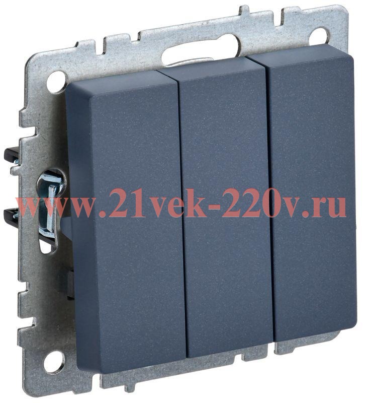 Механизм трехклавишного выключателя для скрытого монтажа IEK BRITE с клавишами цвета маренго. BR-V30-0-10-K35