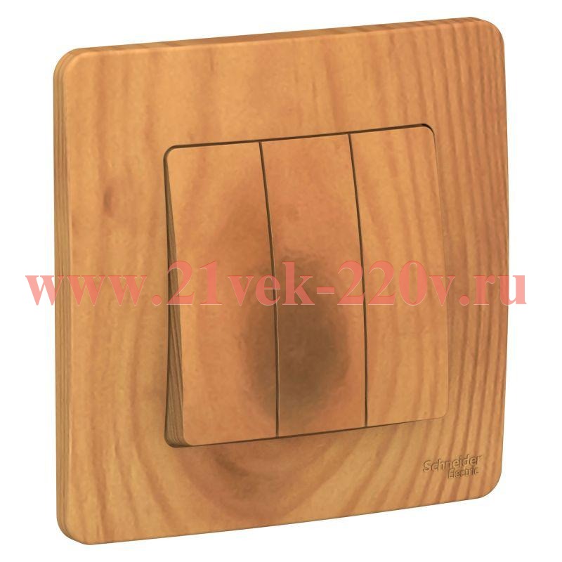 Трехклавишный выключатель скрытого монтажа (встраиваемый), Бланка Систем Электрик, цвет ясень
