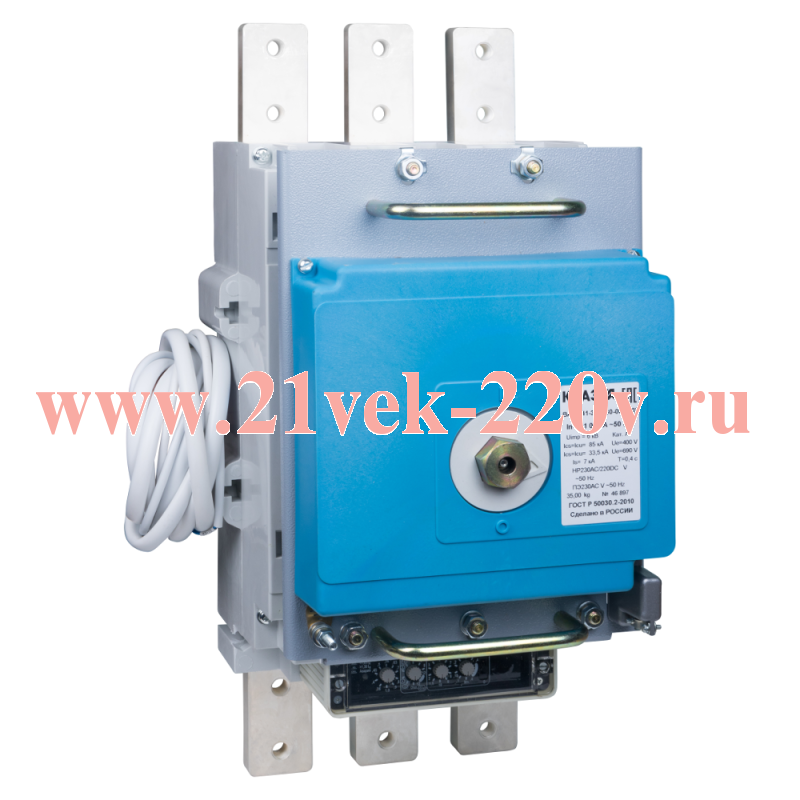 Силовой 3 полюсный автоматический выключатель переменного тока в литом корпусе на номинальный ток 1000 А.
