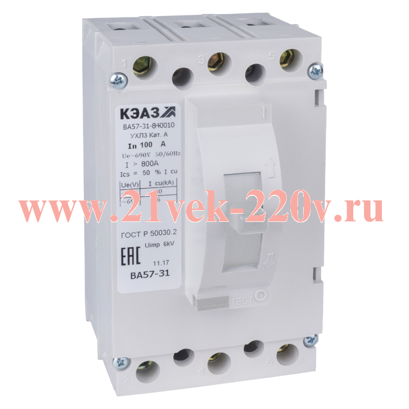 Выключатель автоматический 16А 400lm ВА57-31-840010 УХЛ3 690AC КЭАЗ