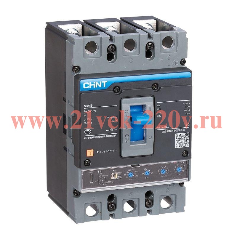 Автоматический выключатель от компании CHINT с электронным расцепителем. Предельная отключающая способность данной модели составляет 36 кА. Это соответствует коду SF в классификации отключающей способности. Модель NXMS-160SF предназначена для работы с номинальным током 160A. Трёхполюсный автоматический выключатель прошёл сертификацию и соответствует международному стандарту IEC/EN 60947.2. Эксплуатация аппарата осуществляется в трёхфазных электрических сетях переменного тока напряжением до 690В. Совместно с устройством можно использовать вспомогательные аксессуары. Модельный ряд автоматических выключателей NXMS охватывает диапазон от 160А до 1600А. Отличительной особенностью данной серии является наличие электронного расцепителя с возможностью регулировки настроек срабатывания. Отключающая способность в зависимости от выбранной модели может составлять до 70 килоампер. Особое внимание при разработке автоматических выключателей NXMS от компании CHINT было уделено качеству материалов и надёжности работы производимых устройств. На подвижные и неподвижные контакты в силовой части нанесено антикоррозийное покрытие. Аппараты имеют двойную изоляцию - токоведущие части отделены от отсеков для установки дополнительных аксессуаров, что повышает безопасность при обслуживании.
