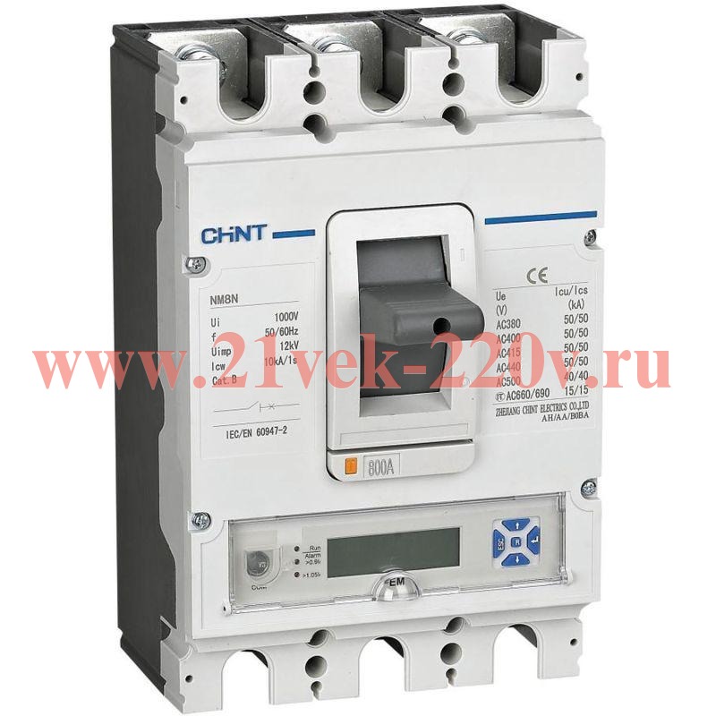 Выключатель автоматический 3п 630А 50кА NM8N-800S EM с электр. расцеп. LCD (R) CHINT