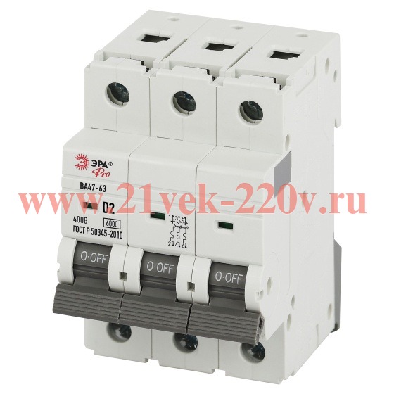 Автоматический выключатель ЭРА PRO VA63-3P02D6 ВА47-63 3P 2А кривая D 6кА
