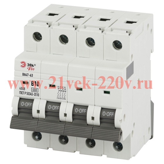 Автоматический выключатель ЭРА PRO VA63-4P10B6 ВА47-63 4P 10А кривая B 6кА
