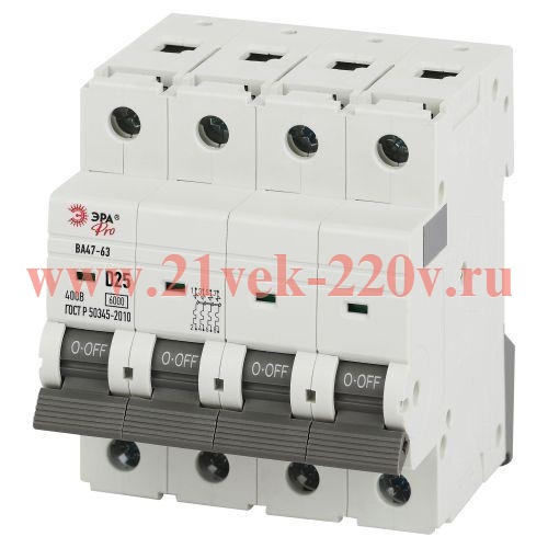 Автоматический выключатель ЭРА PRO VA63-4P25D6 ВА47-63 4P 25А кривая D 6кА
