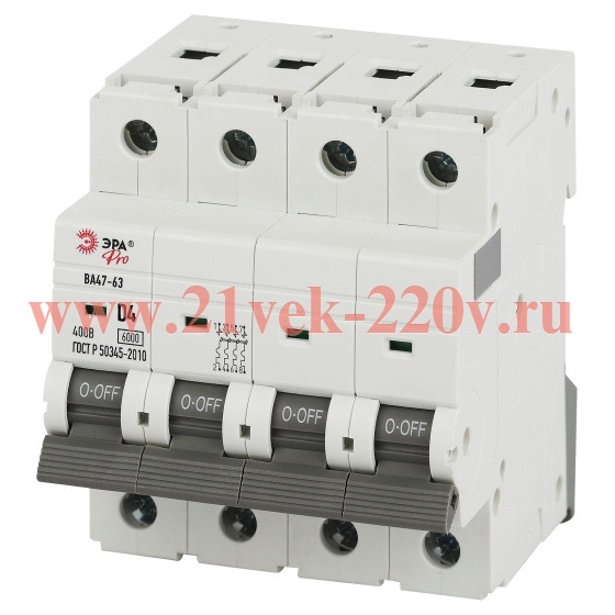 Автоматический выключатель ЭРА PRO VA63-4P04D6 ВА47-63 4P 4А кривая D 6кА