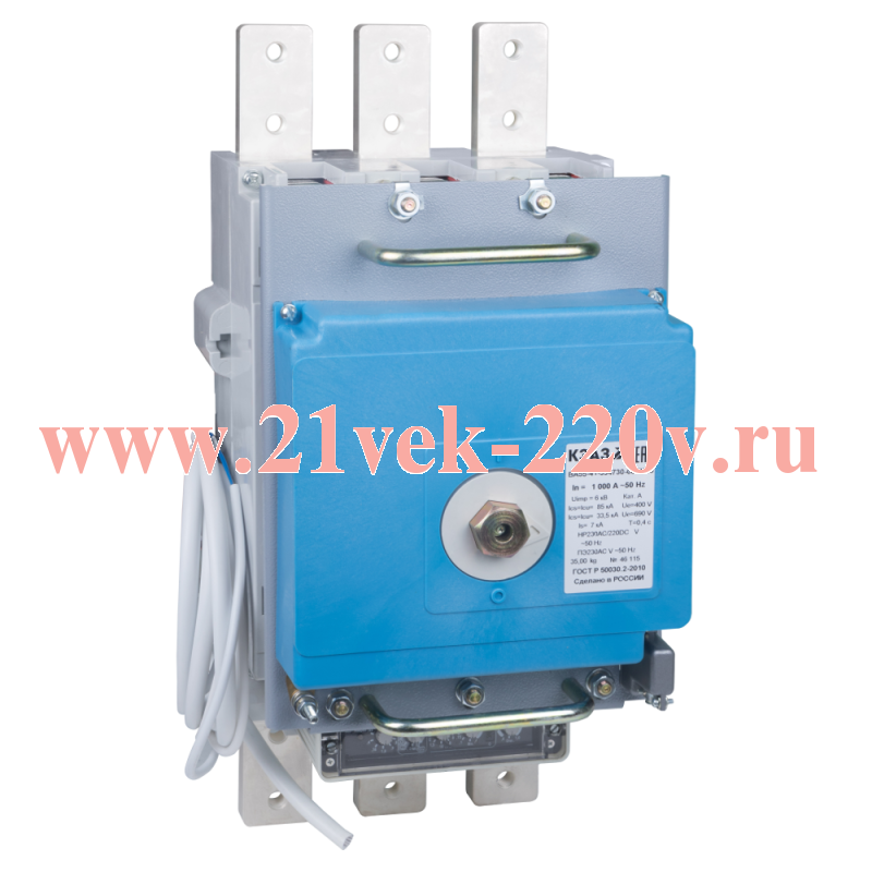 Силовой 3 полюсный автоматический выключатель переменного тока в литом корпусе на номинальный ток 630 А.
