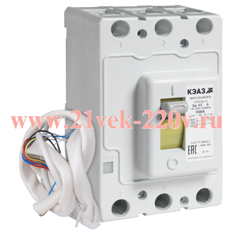 Выключатель автоматический 63А 1250lm ВА57-35-844710220DC НР230AC/220DC УХЛ3 (Втычной без панели) КЭАЗ