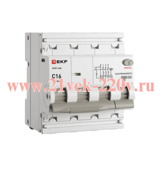 Выключатель автоматический дифф. тока АВДТ-63N 3P+N 16А (C) 30мА (A) эл-мех 6кА PROXIMA EKF