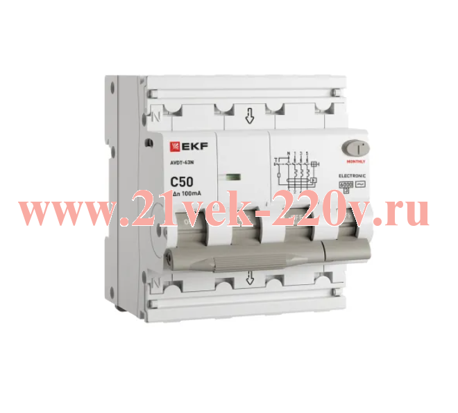 Выключатель автоматический дифф. тока АВДТ-63N 3P+N 50А (C) 100мА (AC) эл 6кА PROXIMA EKF
