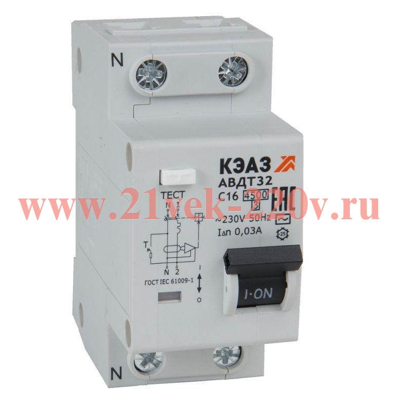 Выключатель автоматический дифференциального тока 2п C 32А 30мА тип AC 4.5кА АВДТ32-22C32-AC УХЛ4 КЭАЗ