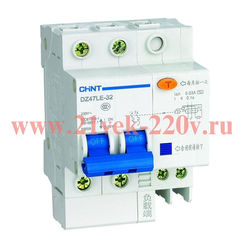 Выключатель автоматический дифференциального тока 2п C 32А 30мА тип AC 6кА DZ47LE-32 CHINT