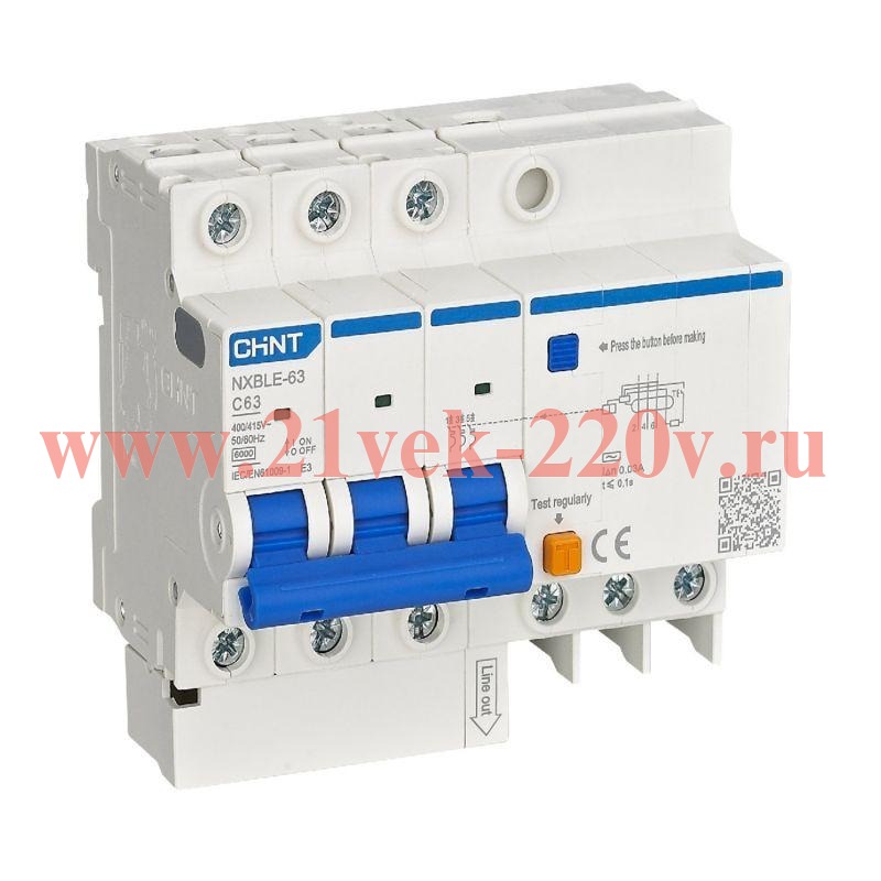 NXBLE-32/63(H) Серия автоматических выключателей с защитой от токов утечек на землю, а также от токов короткого замыкания и перегрузки с отключающей способностью 6 кА.