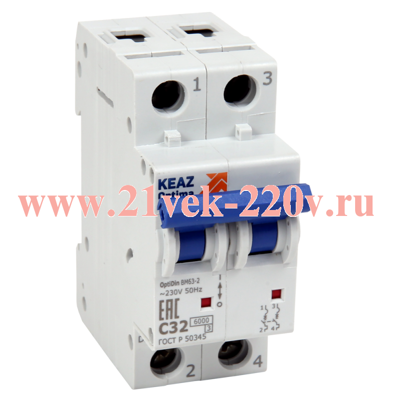Выключатель автоматический модульный 2п B 6А OptiDin BM63-2B6-УХЛ3 КЭАЗ