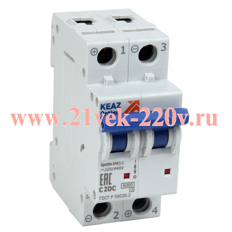 Выключатель автоматический модульный 2п C 5А OptiDin BM63-2C5-DC-УХЛ3 КЭАЗ