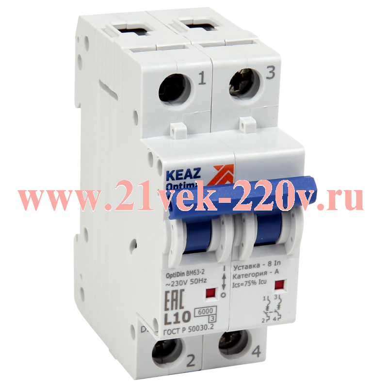 Выключатель автоматический модульный 2п K 20А OptiDin BM63-2K20-УХЛ3 КЭАЗ