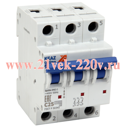 Выключатель автоматический модульный 3п C 32А 15 OptiDin BM63 ОМ4 РЕГ КЭАЗ