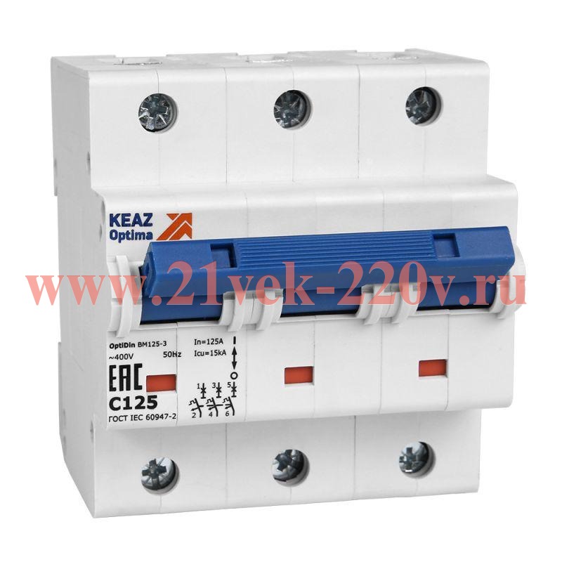 Выключатель автоматический модульный 3п D 80А 20кА OptiDin BM125-3D80-14ln-УХЛ3 КЭАЗ