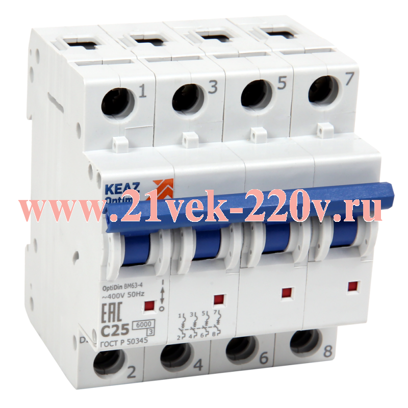Выключатель автоматический модульный 4п C 25А 6кА OptiDin BM63-4C25-УХЛ3 КЭАЗ