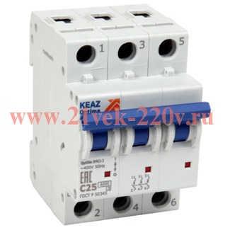 Выключатель автоматический модульный OptiDin BM63-3C25-10-ОМ4-РЕГ КЭАЗ
