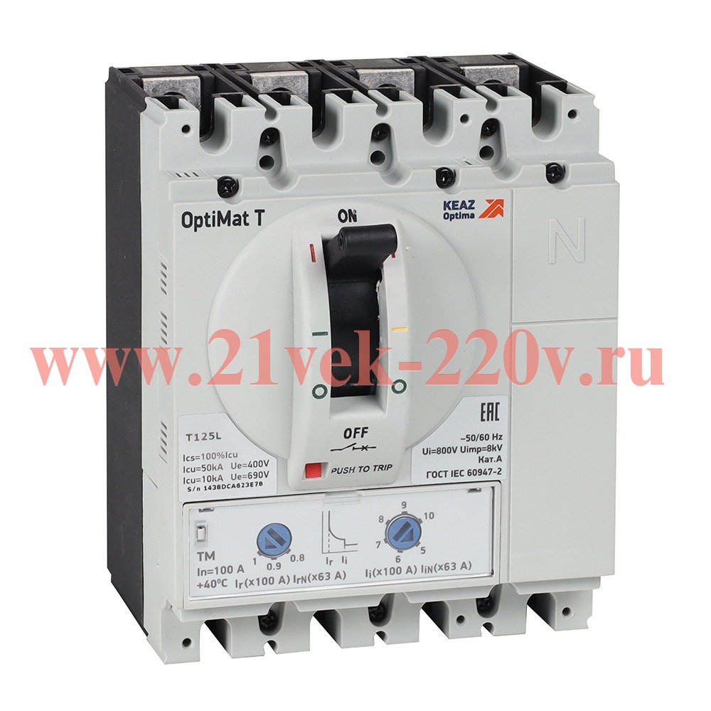 Выключатель автоматический OptiMat T125L TM 20A 3P КЭАЗ