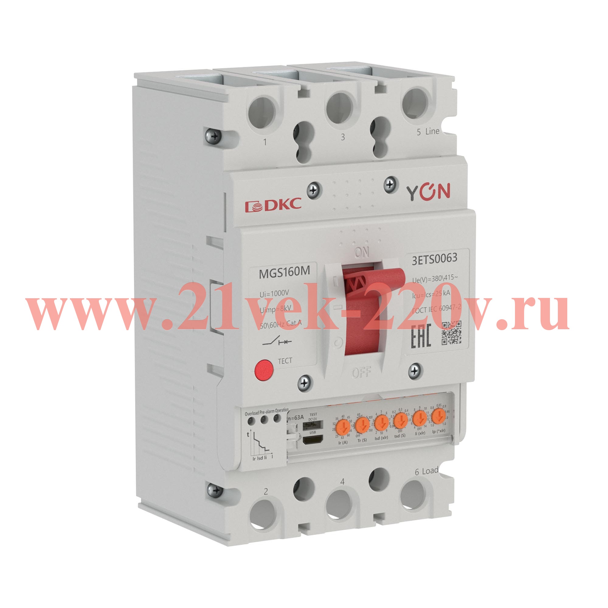 Авт. выкл. YON MGS160M 3P 25-63A 25kA с электронным расцепителем ETS