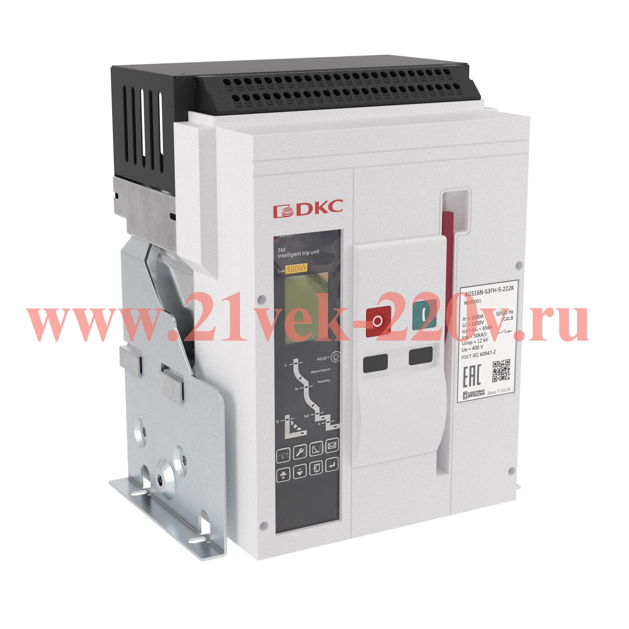 Воздушный автоматический выключатель YON AGS06N 3Р 630 А 65 кА, типоразмер S, расцепитель 3M, фиксированный, горизонтальное подключение
