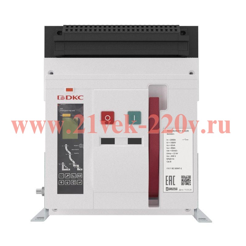 Воздушный автоматический выключатель YON AGS10S 3Р 1000 А 80 кА, типоразмер N, расцепитель 3H, фиксированный, горизонтальное подключение