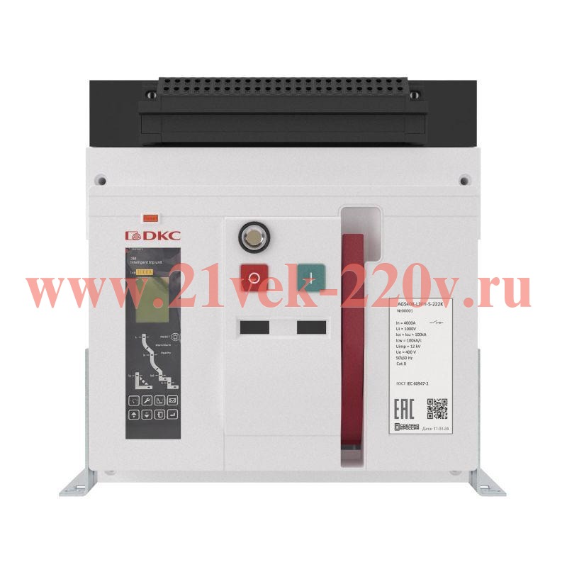 Воздушный автоматический выключатель YON AGS40X 3Р 4000 А 100 кА, типоразмер L, расцепитель 3M, фиксированный, управление 220 В AC, горизонтальное подключение
