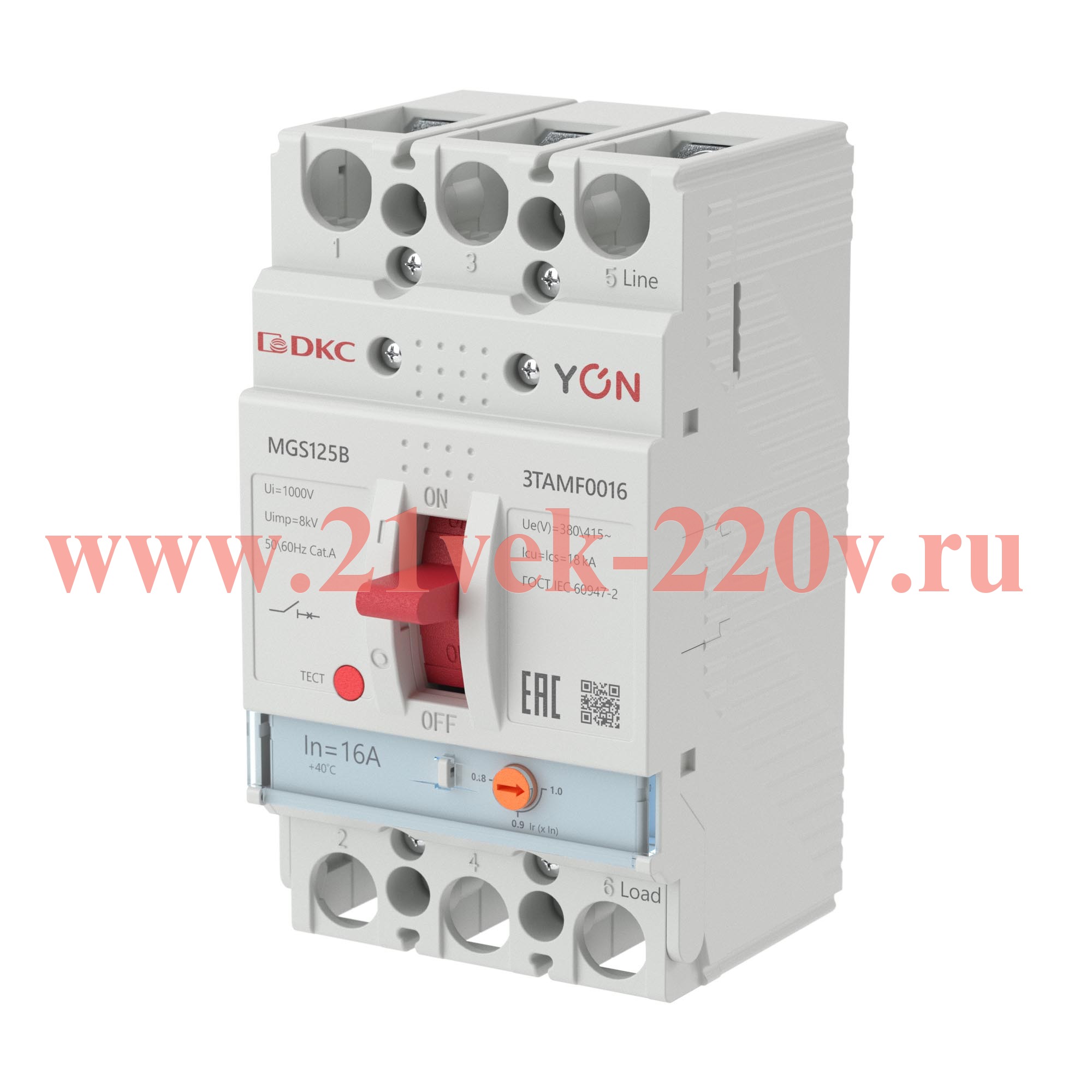 Выключатель автоматическийYON MGS125 3P 12 8-16A 18kA YON (группа DKC) MGS125B-3TAMF0016