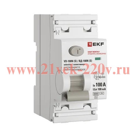 Выключатель дифференциального тока 2п 100А 100мА тип AC 6кА ВД-100N (S) электромех. PROxima EKF