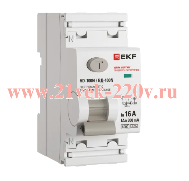 Выключатель дифференциального тока 2п 16А 300мА A 6кА ВД-100N электромех. PROxima EKF