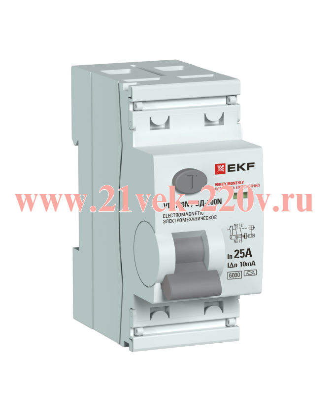 Выключатель дифференциального тока 2п 25А 10мА тип A 6кА ВД-100N электромех. PROxima EKF