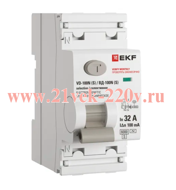 Выключатель дифференциального тока 2п 32А 100мА тип AC 6кА ВД-100N (S) электромех. PROxima EKF