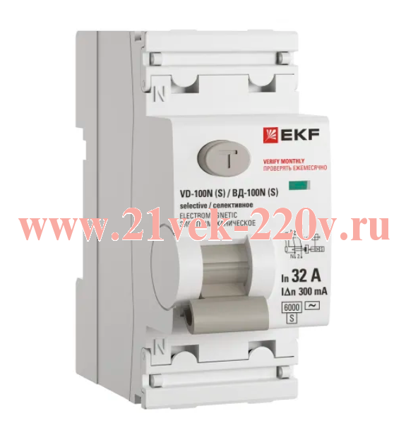 Выключатель дифференциального тока 2п 32А 300мА тип AC 6кА ВД-100N (S) электромех. PROxima EKF