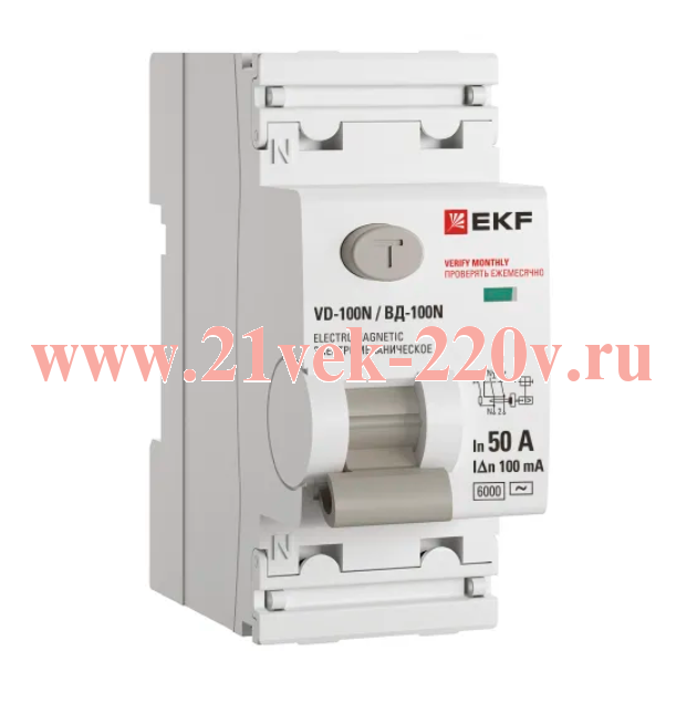 Выключатель дифференциального тока 2п 50А 100мА тип AC 6кА ВД-100N электромех. PROxima EKF