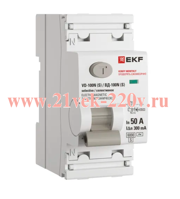 Выключатель дифференциального тока 2п 50А 300мА тип AC 6кА ВД-100N (S) электромех. PROxima EKF