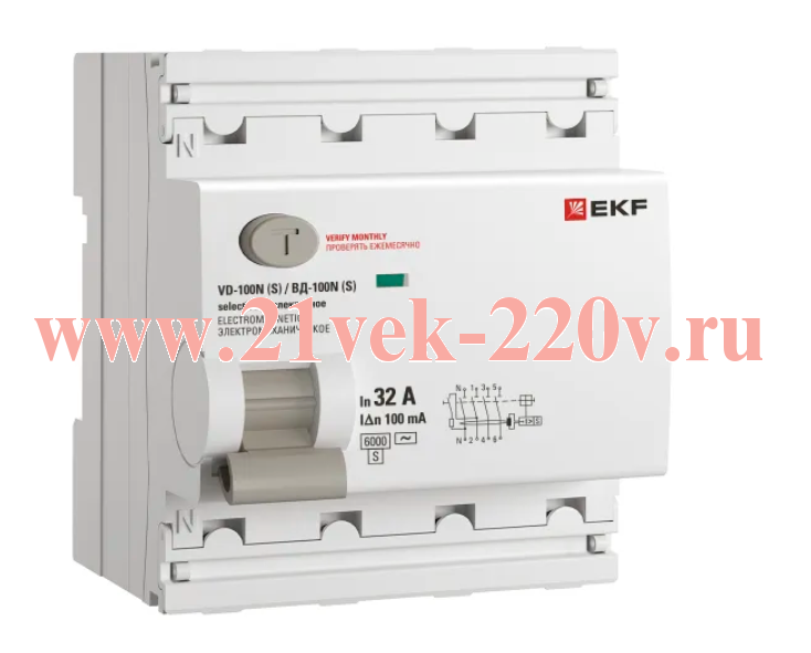 Выключатель дифференциального тока 4п 32А 100мА тип AC 6кА ВД-100N (S) электромех. PROxima EKF