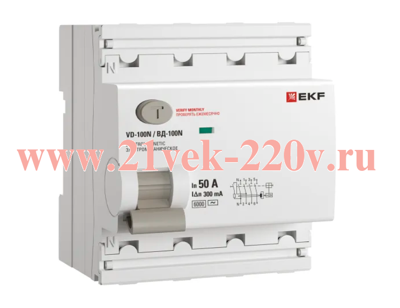 Выключатель дифференциального тока 4п 50А 300мА тип AC 6кА ВД-100N электромех. PROxima EKF