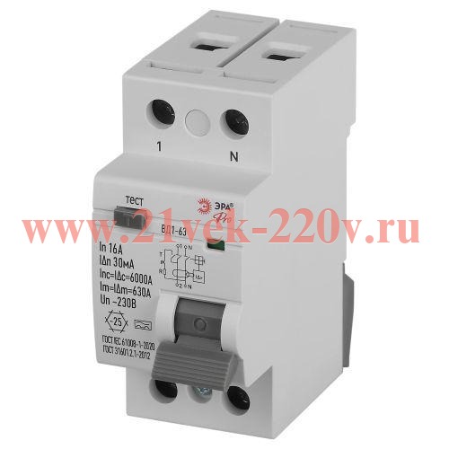 УЗО ЭРА PRO VD2EM16A30 ВД1-63 2P 16А 30мА тип А электромеханическое