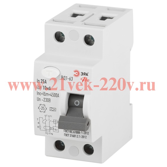 УЗО ЭРА PRO VD12EM25A10 ВД1-63 4,5кА 2P 25А 10мА тип A электромеханическое